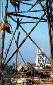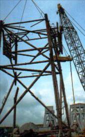 Platform with 28" (70 cm) dia. by 1/2" (1 cm) wall steel piles filled with grout with two inner 1/2" (1 cm) wall tubes