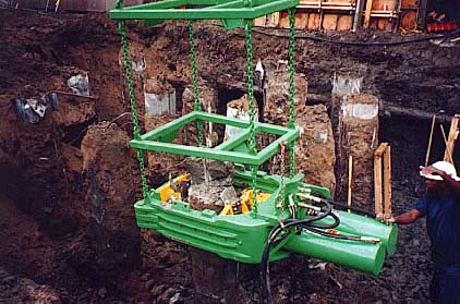 Description: The 24" PCPC is designed to shear and expose steel strands on 18" (450 mm) to 24" (600 mm) square or octagonal precast concrete piles onshore or above water. The cutter is easily attached to a crane, excavator or other common construction equipment. The unit is equipped with one shear blade, pocket, and wiper, standard. Options include crushers, 2 part cradle or turntable, telescopic or short cylinders, and/or a waterjet manifold. Specifications:For weight, pressure and flow specs, please contact us.